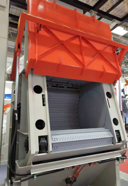 第五點:拋丸器完全停止后,打開加料門,將工裝及工件吊出。