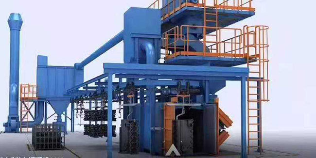 第一,在諸城市通過式噴砂機的配置上采用了軌道分離式和無級變速,同時在生產加工線和輸送系統中保證了嚴格同步,在生產效率上就有了保障。